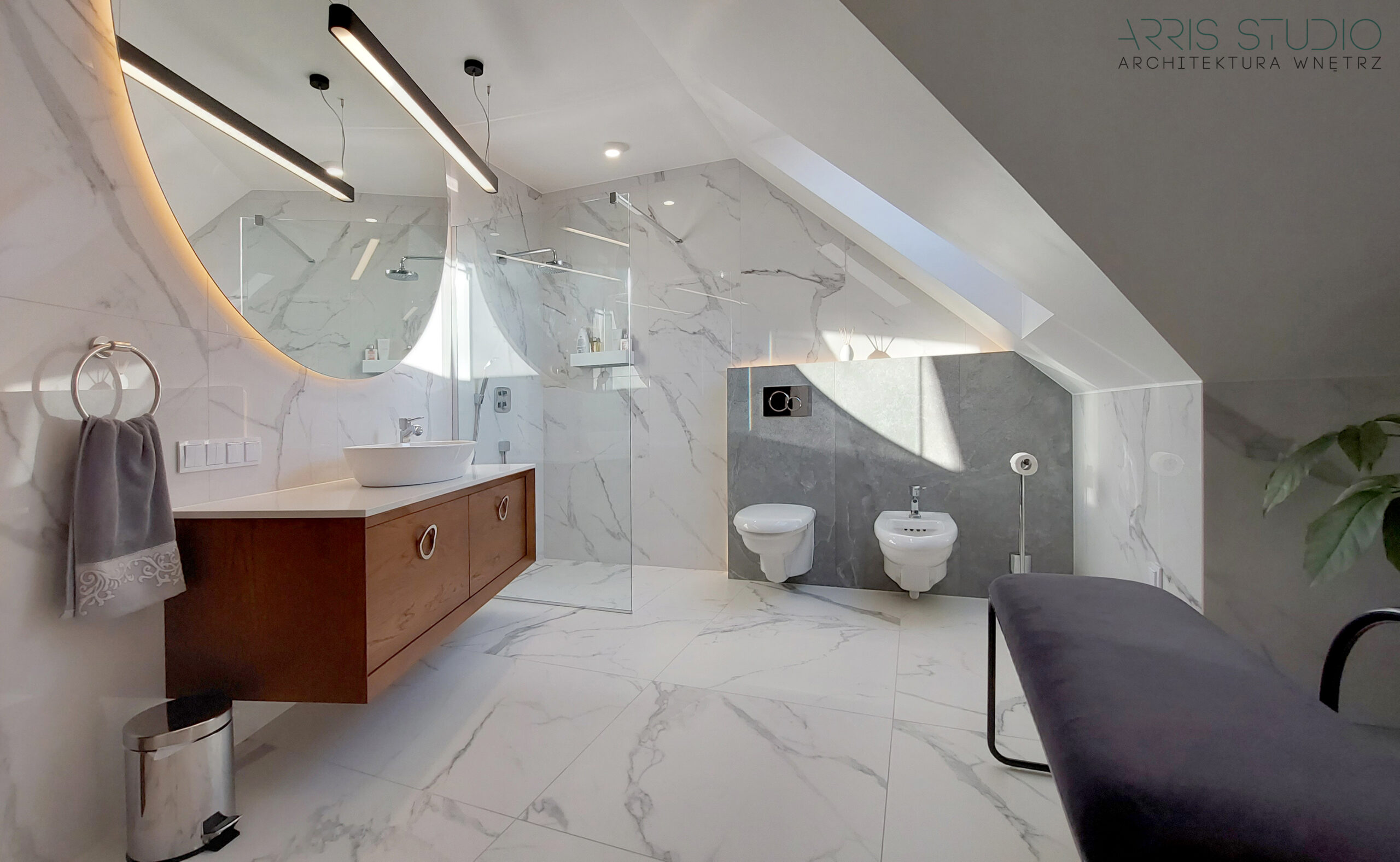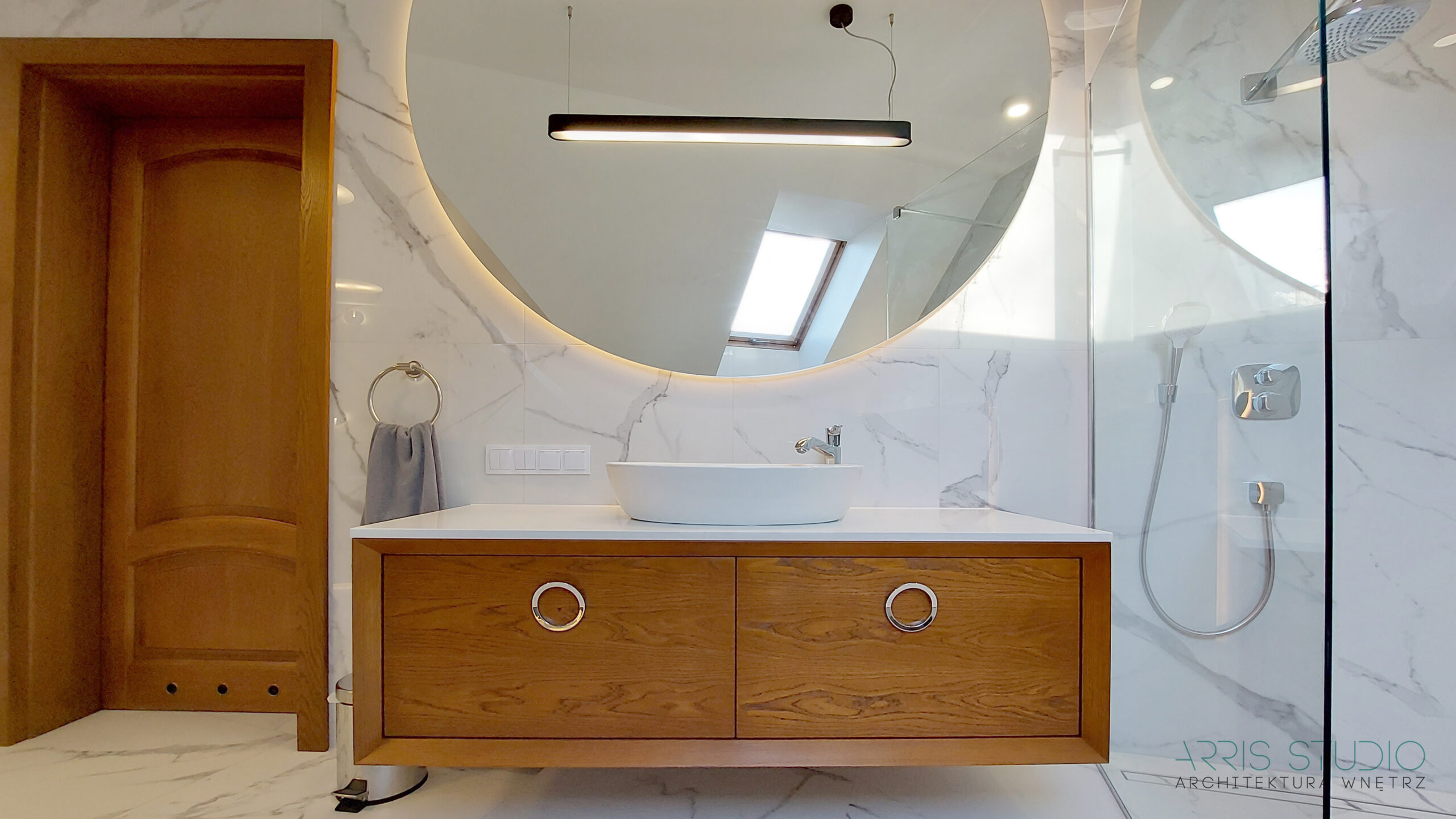 PORTFOLIO Salon kąpielowy i łazienka główna rok: 2023 lokalizacja: Krosno budżet: ~ 3500 zł/m2 stan wyjściowy: dom z lat 2000' Projekt: ARRIS STUDIO Monika Ostrowska